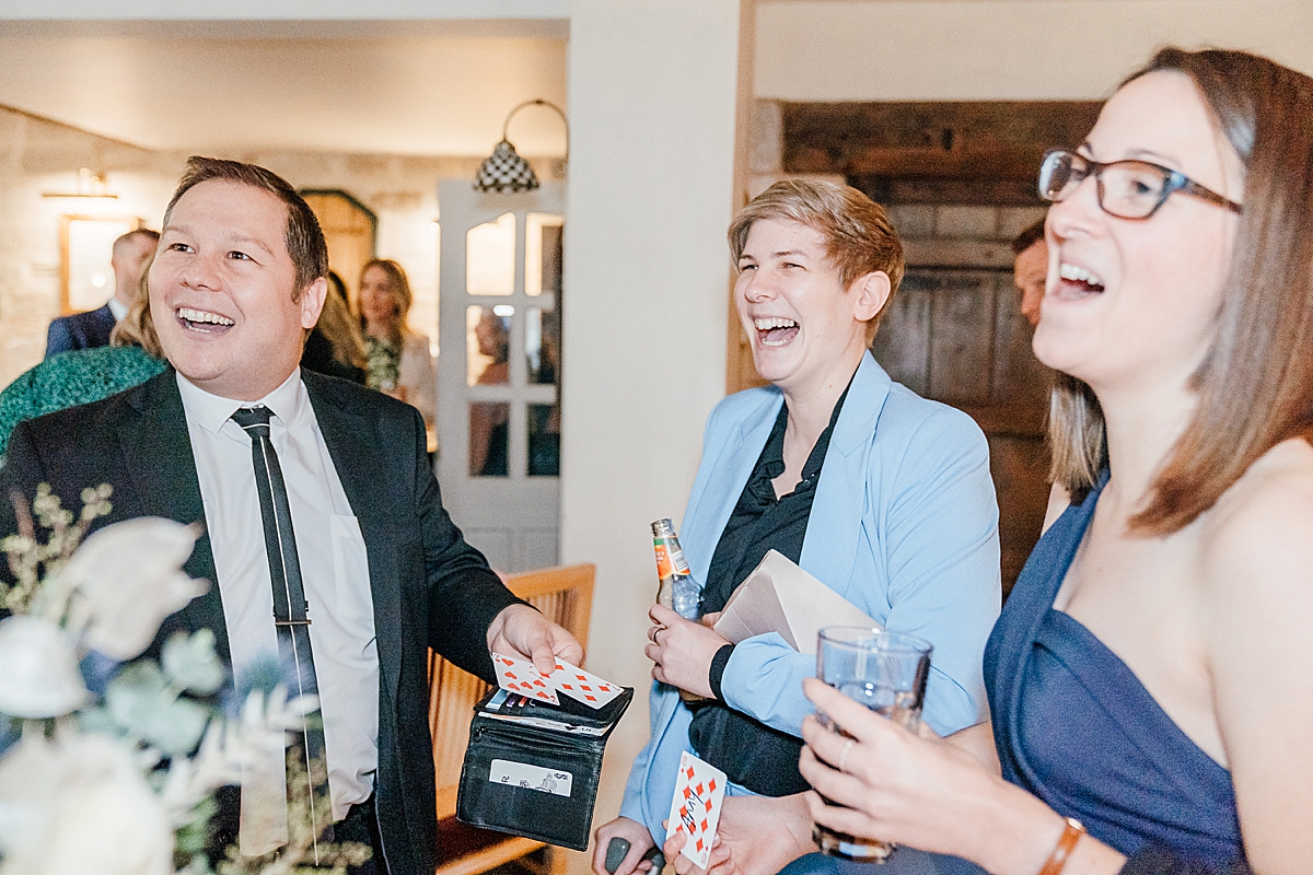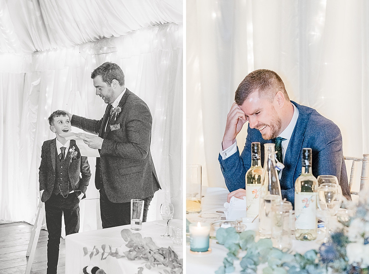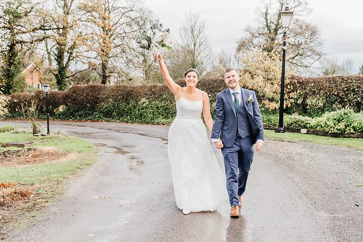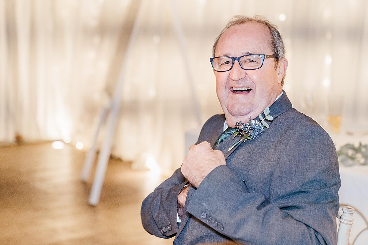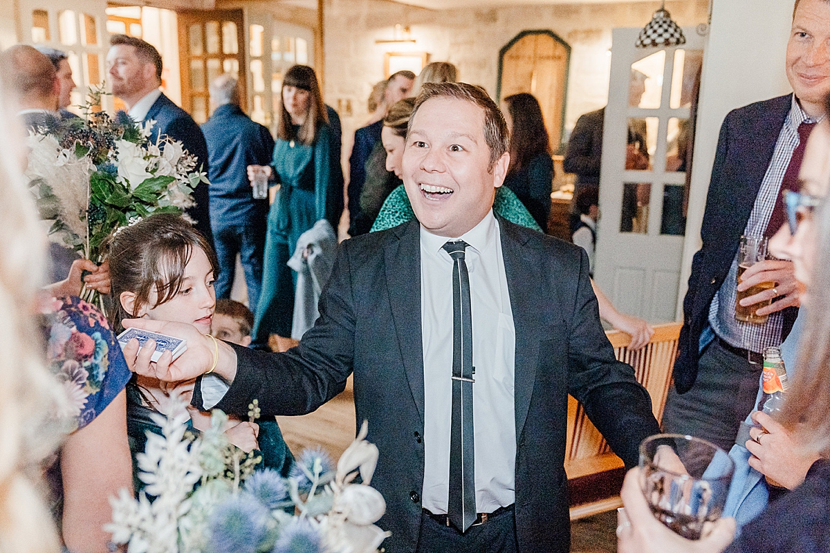 As soon as the ceremony was over, the heavens opened and it rained for the rest of the afternoon, although this definitely didn’t stop everyone heading on out for the confetti and group photos and Lucy & Dave totally embraced the weather for their couples portraits! Everyone huddled indoors throughout cocktail hour to keep warm and dry, but there were plenty of laughs and amazement oozing throughout the room as Grant, The Bath Magician, kept everyone entertained and bewildered!