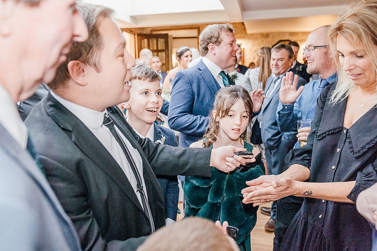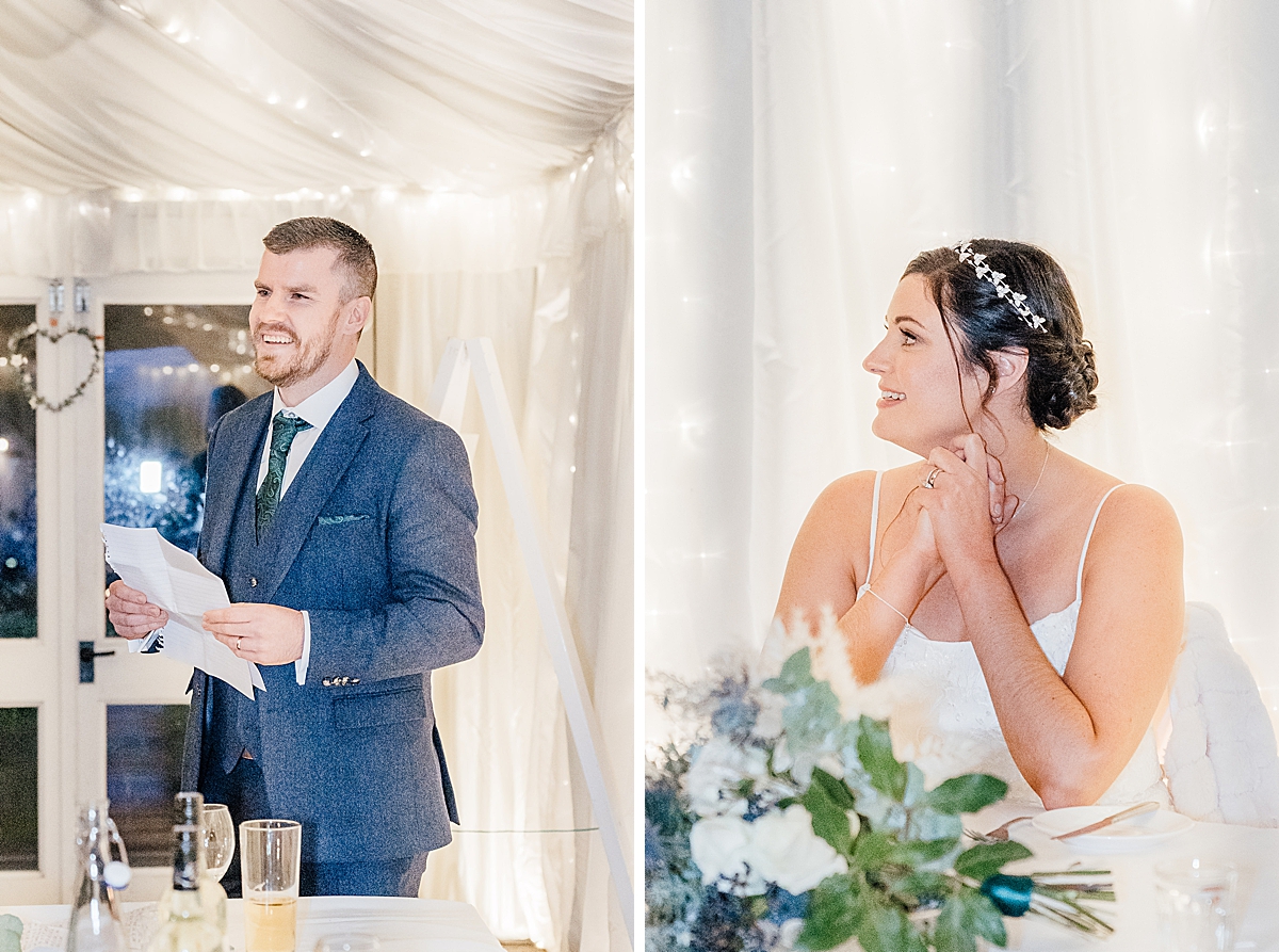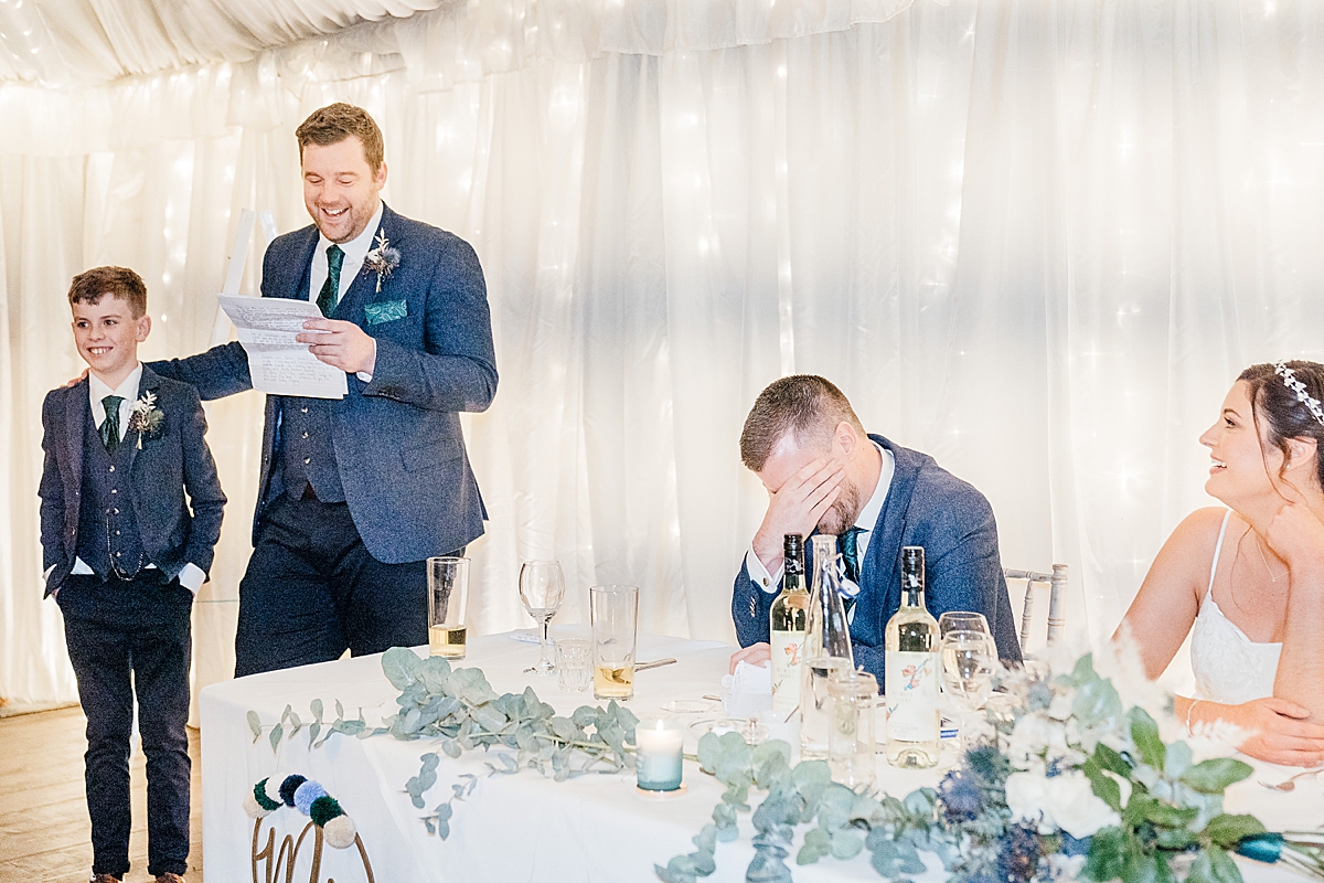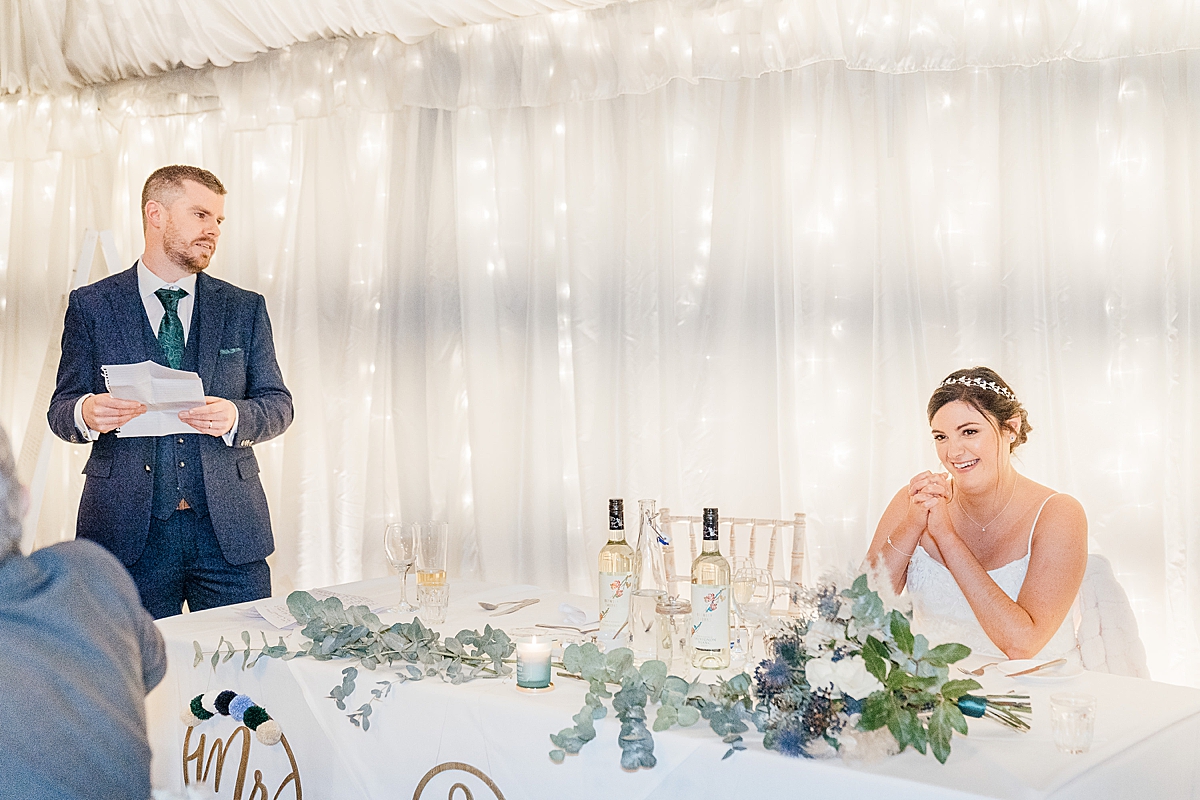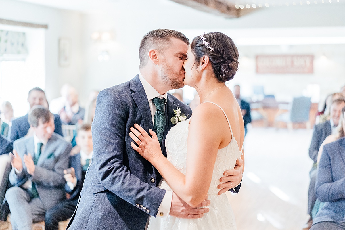 As soon as the ceremony was over, the heavens opened and it rained for the rest of the afternoon, although this definitely didn’t stop everyone heading on out for the confetti and group photos and Lucy & Dave totally embraced the weather for their couples portraits! Everyone huddled indoors throughout cocktail hour to keep warm and dry, but there were plenty of laughs and amazement oozing throughout the room as Grant, The Bath Magician, kept everyone entertained and bewildered!